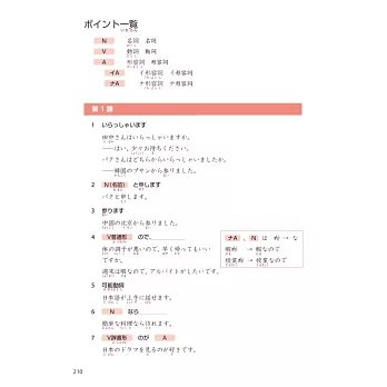 書末整理出「重點文法一覽表」、「動詞活用」、「特殊敬語」、「自動詞和他動詞」等補充內容,幫助學習者快速複習、擴充字彙,學習更加得心應手。