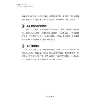 本書用詞簡潔流暢,搭配實用的事例讓人更易於吸收,彙集了諸多行之有效的溝通技巧,讓讀者能夠學會提問、應答、讚美、拒絕等優質的溝通技巧,並且能夠利用各種溝通技巧解決生活中難以應對的問題,了解有些話該什麼時候說?該怎麼說?又有那些話不能說?立即提升說話力。