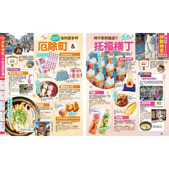 伊勢神宮是自古深受民眾景仰的日本神社本宗,每年約有800萬人來訪,從江戶時代就有「一生一定要參拜過一次」的說法,也是觀光客必去參訪的景點之一,本書詳細介紹內外各宮的資訊、參拜順序和地圖,能安心參拜,用一整天靜心感受日本宗教信仰的神秘力量後,可去知名的「厄除町」「托福橫丁」,在富有風情的參道走走逛逛,挑選最適合的伴手禮,小憩一下。