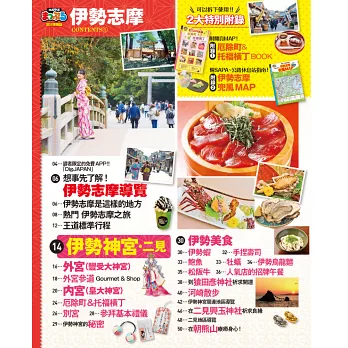 因特殊的海灣地形,此地的夕陽美景常常讓人流連忘返,歷史人文、宗教信仰、自然美景、度假勝地、遊樂設施全都可一網打盡的伊勢志摩地區,是一生絕對會想來玩一趟的地方,本書不但幫讀者安排了範例行程,也介紹許多當地美食,想要快速掌握玩樂重點和好吃好喝的話,選擇哈日情報誌就對了!