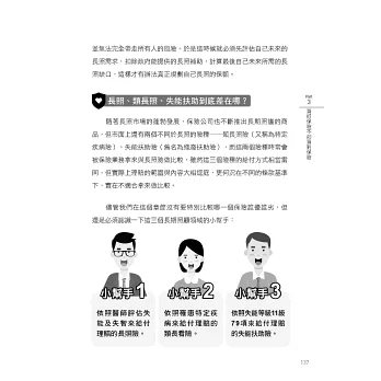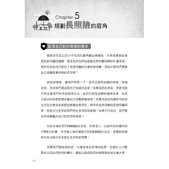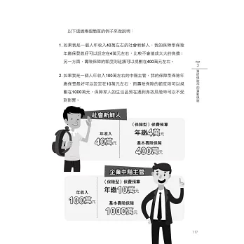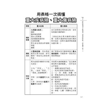 規劃「壽險、意外險、醫療險、重大疾病險、長照險」要注意哪些眉角?「幼童、學子、出社會的年輕人、責任重大期的青壯年、屆臨退休的中年、已退休的中老年」等不同階段各別適合什麼保險?書中以大量圖片、表格,解說如何規劃人生各階段所需的保險,並搭配相關範例與試算,幫助你正確了解自己的需求。