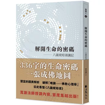 寬謙法師以建築理工的背景,繪出豐富的圖像與圖表,並以親切慈悲的文字說明,破解「唯識:佛教心理學」的迷霧,讓您從此看懂《八識規矩頌》。