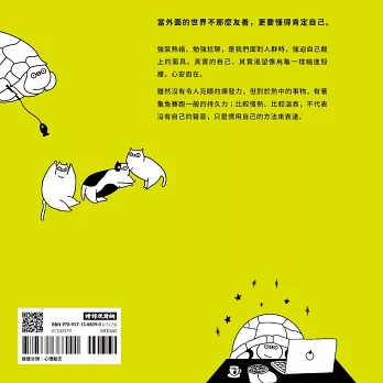 強裝熱絡、勉強尬聊,是我們面對人群時,強迫自己戴上的面具。真實的自己,其實渴望像烏龜一樣縮進殼裡,心安自在。