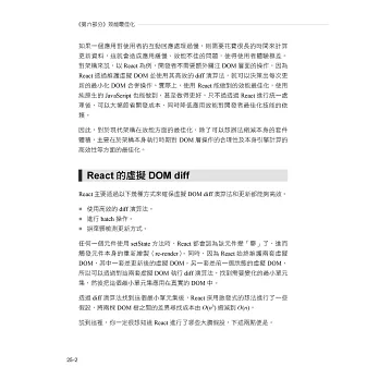 本書深入淺出,從基礎的JavaScript語言特性入手,抽絲剝繭,直指前端物件導向開發的技術困難;再從流行架構切入時下的前端工程實作,既有CSS經驗之談,也有效能偵錯與前端演算法理論進階。另外,作者豐富的開發經驗又指定了此書強烈的技術前瞻性。