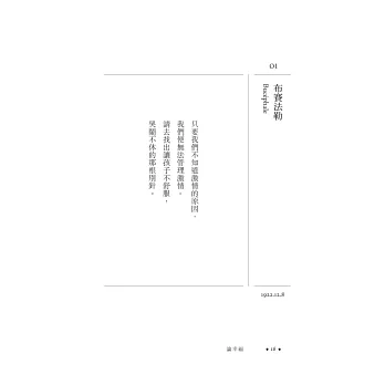 ★阿蘭的「隨筆」系列歷經長達數十年的反覆再版,絕對是二十世紀作家的書寫當中,最睿智也最值得為人所借鏡的作品之一。這位專精於古代經典的思想家使我們能正確地理解行動的哲學,其中也不乏對抽象智慧的思考。每個人都應該隨身攜帶一本阿蘭的隨筆集。