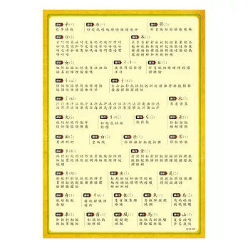 中文字的世界千變萬化,許多的字既可以單獨存在,當兩個或更多字拼在一起之後,還能出現更多的文字。「穿上『披風』,爬上『山坡』,山頂的蘆葦像『波浪』」。你發現了嗎?只要將「皮」和不同部首拼在一起,就會出現不同的字。本產品內含部首和偏旁字共計162張單字卡,透過隨機組合就能產生許多的字。 運用遊戲形態的學習方式,讓學習中文字的過程更有趣、更有效率。