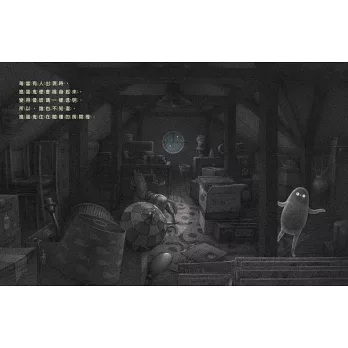 ▼精緻的鉛筆手繪風格,閣樓的細節非常吸引人,彷彿可以感覺到閣樓的灰塵和石膏粉就在空氣中飄散一樣。