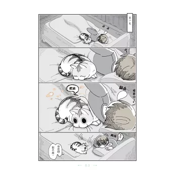 以及加筆收錄40頁為單行本全新繪製的短篇:「風太出差日」、「咕嚕加與小P的共同生活」、「貓咪的夜間運動會」……共計34篇與貓咪度過的夜晚,療癒你的心。
