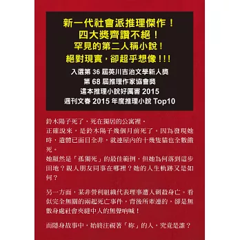 ★新一代社會派推理傑作!四大獎齊讚不絕