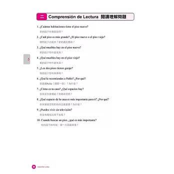因書內有大量的練習,為了讓讀者方便核對答案,或是查閱作者所撰寫的參考答案,本書特別將解答獨立成冊。別冊內皆附答案與題目的中文翻譯,以便在讀者需要時,能直接了解西語的意思,不用再查找字典或猜測。