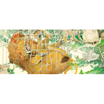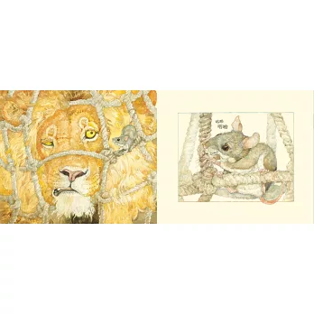 美國知名繪本作家傑瑞.平克尼以本書榮獲凱迪克金牌獎,他拿掉文字敘述,重新詮釋出自「伊索寓言」的〈獅子與老鼠〉,將這個深受世人喜愛、耳熟能詳的經典故事,設計成用圖畫說故事的無字繪本,展現出更深的寓意。