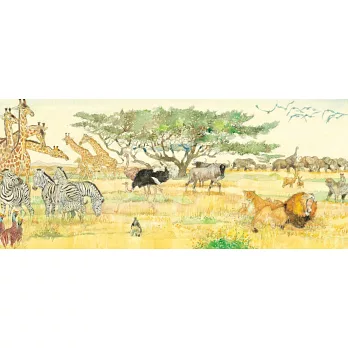 ▍以精湛的水彩細膩的描繪出非洲大草原的明媚風光,多變的構圖、寫實溫暖的畫風,生動傳神的表現出動物的姿態與表情,獨特又有創意。