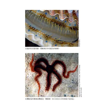 ◆ 扇貝的生物構造看似簡單,卻有複雜的視覺,貝殼內緣環繞著許多亮藍色的眼睛。