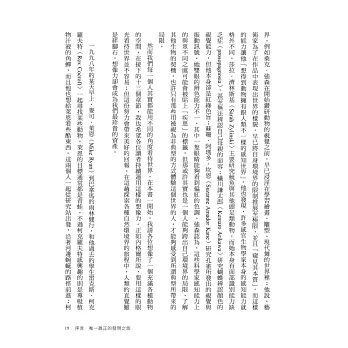 人類這種動物五技而窮,卻瞧不起其他動物,不過,隨著知識的成長,我們終將深入認識並尊重萬物。本書所提供的資訊,是個很好的入門。