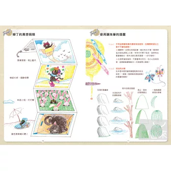 * 繪畫技巧教學與繪本功能:有故事情節的繪畫教學書。不但有解構式的分解圖,還有繪本式的主題情境圖。讓讀者在閱讀故事之餘,也可以拿起筆來試試看?