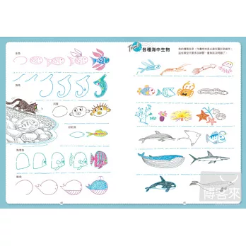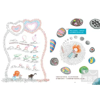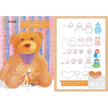 書裡許多看起來很複雜的畫面,其實都只使用了「重複」與「重疊」這兩種技法,琪琪首次公開技巧竅門,有詳細的解說及示範,趕快拿筆起來畫畫看,So Easy~