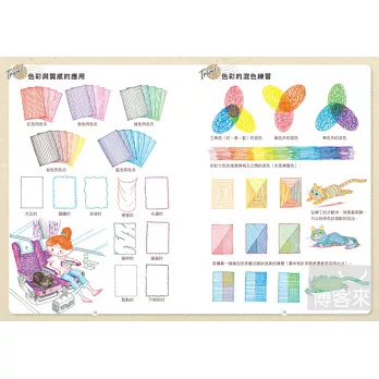 * 色彩的質感與混色:同色系、三原色、混色,有清楚的圖解與示範。