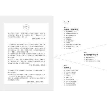 看似天馬行空的提問,卻不斷衝擊你去打破框架與限制,享受書裡出現的問題,讀完之後,除了大汗淋漓,更多了一番此後對人生思考與面對問題的新體會,值得一讀!