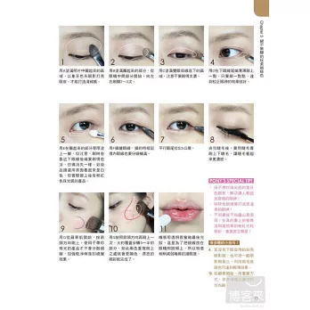 不同眼型的眼線描繪技巧+眉毛畫法+睫毛夾使用法+睫毛膏小技巧+唇彩表現,只有在DVD裡才能看到的特別彩妝教室,共4回90分鐘,隨書獨家贈送!
