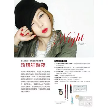簡易上手的大地色,到難以駕馭的柔和綠色、清涼藍色、迷幻紫色、單一色系,教你變換特殊畫法,搭配季節、地點、時間,無論約會上班都正點!