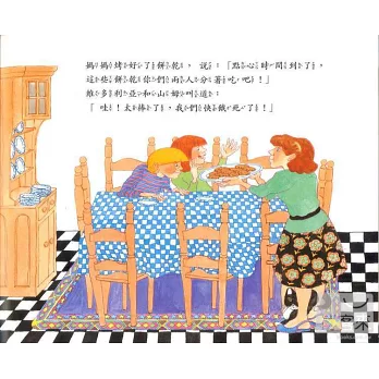當林真美還年幼,甚至無法好好獨自站穩時,她就喜歡抱其他的孩子,「軟軟小小、牙牙學語的小孩好可愛。他們和成人是不同的人種。」以至於她形容,孩子讀書像飛蛾撲火,成人讀書則是隔岸觀火。 飛蛾撲火,是因為孩子讀繪本時是用全身感覺去體驗、投射角色,沉浸於故事中,享受情節的變化,成人則以客 more媽烤的餅乾,好好吃喔,和奶奶烤的一樣香。維多利亞和山姆,一個人可以吃六個,吃得飽飽的的,可是,就在這時候門鈴響了,來了兩個小客人,「一起吃餅乾吧!」一人三個,還不錯;但是,門鈴又響了,又來了兩個小客人,「一起吃餅乾吧!」一人兩個,然而,門鈴卻又響了,這一次來了六個人,一起吃餅乾吧!?偏偏門鈴又響了……