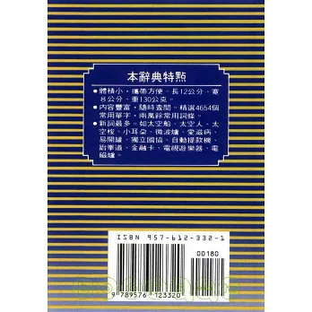 五千餘字,四萬餘條成語,收錄報章雜誌及日常談話用語,具實用性及普遍性,十分輕巧方便。