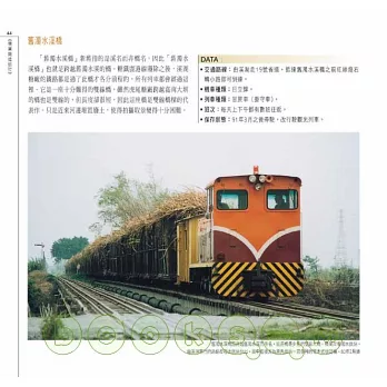 本書除了收錄精采的糖業鐵道風光,從糖的製造運送過程、糖鐵路線分類、糖鐵多元的車種款型也皆有詳述,其中更介紹了最令作者著迷、台糖最重要的一條幹線「南北平行預備線」。《台灣糖鐵攬勝》呈現最在地的「五分仔車」風貌,就讓糖鐵專家帶你跨越時光隧道,登上糖鐵的慢遊小火車,隨著嘉南平原甘蔗的甜美滋味,一路晃遊大城小鎮的私房風情。