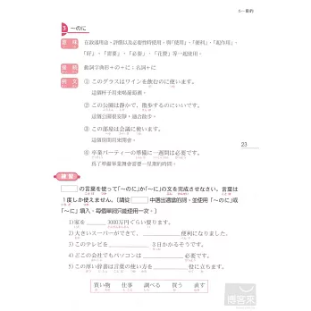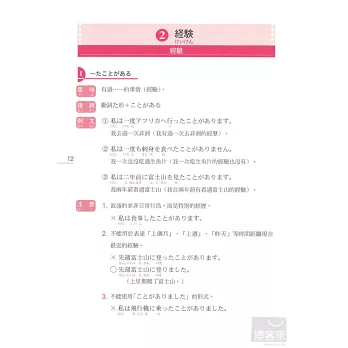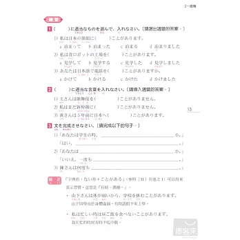 每一項目學完後,馬上就有練習題可以測試你是不是真的懂了,整本學完後,還有綜合練習題與模擬考題,幫你針對最難記的接續、助詞部分反覆練習,並且做好最後確認。實際體驗自己的實力正在不斷成長吧!(答案附在本書最後)