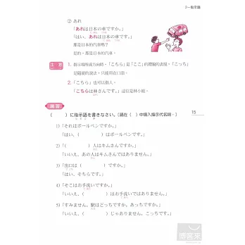 集中練習N4、N5程度一定要知道的43個文法項目,如:「禮貌體」、「指示代名詞」、「數」、「數助詞」、「表示方位的用語」、「動詞te形」、「自動詞、他動詞」等,書中例句裡的辭彙、漢字,也全都是N4、N5必學。一本在手、受益無窮!