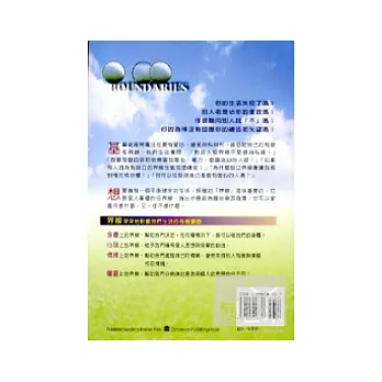 我本來是自怨自憐的,陷在情緒的苦難中走不出去,生活一片混亂。因著神的憐憫,這本書一再對我「對症下藥」,告訴我必須靠界線「更新」,提醒我七情六欲都出自內心,若想不開,那是我「自己允許的」,不能怨天尤人。解鈴仍須系鈴人,我必須為自己界線範圍內的情緒負責。不要天真地以為感情的傷慟會自動消失─痛楚只是一時隱藏,仍要再浮出檯面的。我不能鴕鳥式地把頭埋起,更不能寄望別人來帶我出去,只有自己─在神與祂神國兒女當後盾的支持下─才可能讓自己知行合一地「付諸行動」走出來。