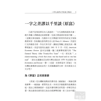 這本書所涵括的文章就是此背景下的產物,這些篇章似乎與個人多年來出版的結集書類似,不過,它們更具根本性,因為20世紀末我是有那麼一種「將基本理念有系統地澄清、闡釋」的念頭。也很湊巧的是,《工商時報》專欄組的朋友希望我幫該報周日版的「經濟教室」欄寫稿,我也就不客氣地將個人理想付諸實現,但可惜的是囿於該報政策,我只輪寫21篇,它們就是本書第二篇全部和第一及第三篇的一部份。