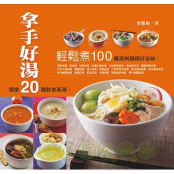 本書精選出20款適合全家大小且食材容易取得的高湯,包括經典必備的雞高湯、排骨高湯、海鮮高湯,市面上最流行的川味麻辣高湯、南洋咖哩高湯、韓式泡菜高湯、泰式酸辣高湯,以及食譜老師廣受好評的私房高湯如豆漿高湯、杜仲大骨高湯、燒鴨高湯…等等,每款高湯均詳細說明製作方法、成品份量、保存方式及期限、湯頭特色等,並附有4?6種延伸食譜,內容涵蓋湯品、熱粥、湯麵、火鍋,讓大家可以一湯多用,輕鬆變化出讓家人吃不膩的可口湯品。