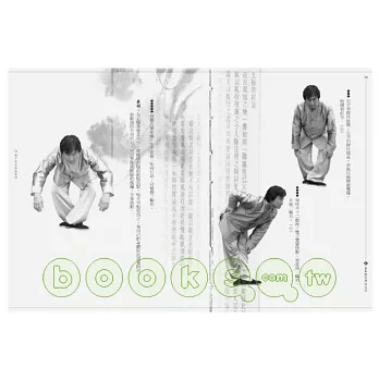 這套功法總共二十四式,加上收功式,最前面還介紹拉筋、步法、重心平衡的基礎練習,所有招式皆非常簡單易懂,附上衛子雲老師所親自動作示範的VCD,只?持之以恆操作太極能量功,在徐緩、剛柔、化弧走圓、螺旋纏繞動作中,必可感受到身心靈的同步提升,獲致細胞活化的具體效果。