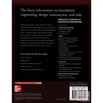 This practical resource offers complete coverage of foundation engineering, emphasizing the geotechnical aspects and the use of the 2006 International Building Code.