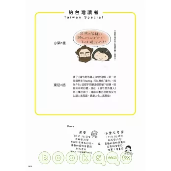 這次的《達令是外國人2》更好看,這次小栗的媽媽與東尼演出爆笑互動,還有小栗前往美東見東尼家人以及兩人正式登記結婚的精彩全記錄,當然也少不了定番的「東尼的自言自語」單元,書末還有「達令是外國人」的讀者問卷調查大公開。全書半彩印刷,看起來更過癮!
