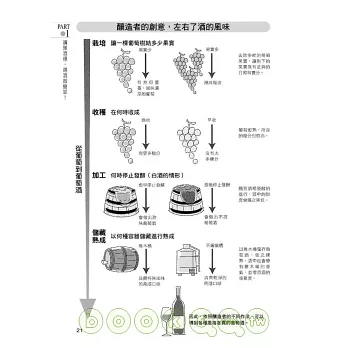 想在餐廳點瓶葡萄酒來喝,怎樣做才能讓旁人刮目相看?哪些種類的起司,搭哪些葡萄酒,風味最能相得益彰?法國的葡萄酒,又和美國、義大利、智利、阿根廷、澳洲甚至日本所產,有什麼不同?這些原本需要花大筆開瓶費和時間,才能學到的進階知識,竟然在本書裡都有詳細的解說。