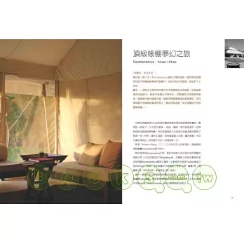 葉怡蘭所嚴選的每一家旅館,住宿費用皆為驚人天價,但除了「頂級」「奢華」之外,更是家家別具特色,魅力非凡。例如此刻旅館界最紅火的「amanresorts」集團旗下的Aman-i-Khas、Amanbagh、Amanpulo、Amansara、Amanjiwo……;同樣人氣指數超高的「Oberoi」集團旗下的Udaivilas、Amarvilas,boutique hotel中由名設計師Philippe Starck打造的Sanderson以及Anouska Hempel設計的The Hempel;日本旅館界赫赫有名的強羅花壇、現正炙手可熱的祕湯溫泉旅館旅籠及仙壽庵;移動的旅館Cassiopeia寢台列車……等等。