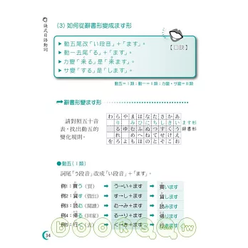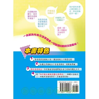 日語的動詞變化是初學者在學習上深感困難的一環,為了幫助學習者了解動詞的變化方法與運用,奠定良好的日語動詞基礎,書中儘量避免艱澀難記的文法專門用語,改以簡單易懂的說法搭配適當的口訣提供學習者參考。