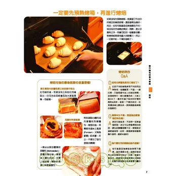 其中,微波烤箱的實際溫度,其實很容易降得比顯示的溫度還低,且不容易昇到高溫。因此,如果是要烘烤成脆硬的麵包,就必須多下點功夫,運用諸如先加熱烤盤這樣的變通作法等,才能順利完成。另外,本書在食譜設計上,並不是著重在如何使用大量的酵母來縮短製作時間,反而是要如何儘量減少酵母的用量,讓麵糰確實發酵,以做出質地濕潤,可以達到一定程度保存期限的麵包,以此為考量的重點。