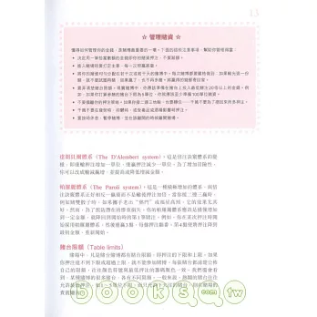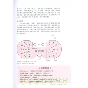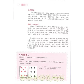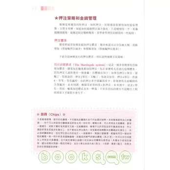 ◎其中第五部份「撲克」中還介紹了撲克中的德州同花順、奧馬哈以及沙蟹。第七部份「其他博彩」中介紹了角子機、基諾和賭場撲克。