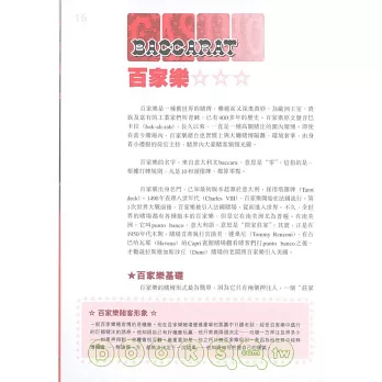 ◎第一章,「引言」︰有關賭場、賭博及各種賭博遊戲的總體介紹。