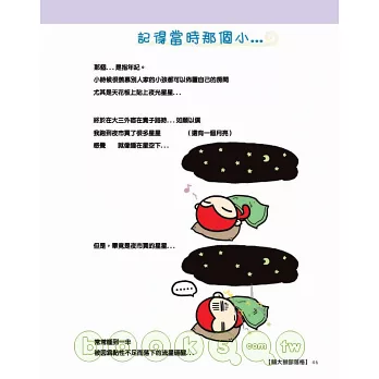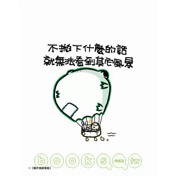 可別以為輔大猴只會耍冷和搞笑,猴子也有細膩的一面,有深入心坎的人生體會──「我們都在不斷地受傷與傷害別人中,學習不再受傷的方法,然後長大。」 也有撫慰人心的短語──「在別人都不懂的小圈圈裡,也要找到屬於自己的快樂。」收錄16則圖文搭配的短語,讓你停下腳步,想一想再出發??