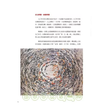 立願要為台灣藝術家作傳是我不悔的承諾,寫出藝術家的創作生命,對我一直是個神祕的吸引力。這本書著重藝術家創作生命的探求,我希望能將知性的論述以感性的形式書寫。全書以藝術家面臨創作瓶頸時內心的掙扎與追尋的過程為經,以各個時期不同階段的作品為緯,祈能鋪陳出藝術家風格的誕生與蛻變的心境轉換。
