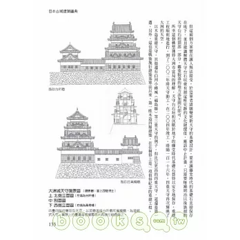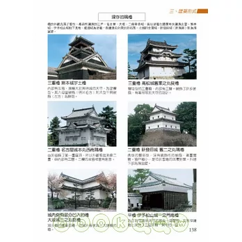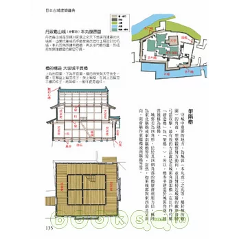 三百八十張照片、一百六十張重現古城建築結構的分析圖,告訴你為什麼城牆外面要築壕溝、古時候是怎麼把把石牆堆砌起來的、天守是什麼、城門有哪些種類、城與外圍、武家、民家建築的位置關係……。