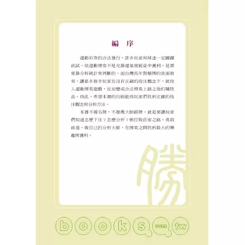 ★ 本書不報名牌、不推薦名師跟牌,但要你知道怎麼下注、怎麼分析。