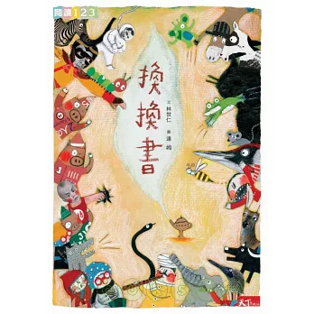 在《換換書》裡,名字會換來換去,爸爸叫天花板、媽媽叫地板、車子叫唉唷喂啊……所以小朋友的作文變成這樣:「昨天,天花板和地板開著唉唷喂啊帶我出去玩。」媽媽也會換來換去,一大早起床,突然發現媽媽變成啄木鳥,從此要按照鳥類的習性生活,有人的媽媽變成獅子,所以開始學習吼叫的本事,還有人的媽媽變成太空人,當然漂浮變成最重要的晨間課程。調皮的風不斷惡作劇,接下來還要把什麼東西換掉?一場場驚奇秀即將上演,歡迎小讀者一起來想像,風還能吹出什麼驚奇。