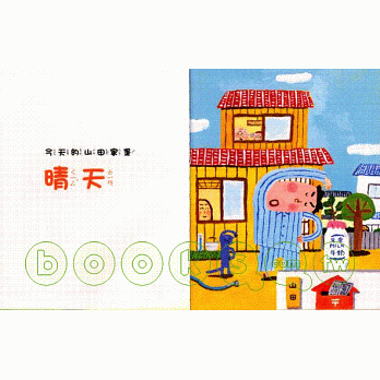 畫面類似兒童鮮豔的塗鴉,用大面積的水彩構成的圖案,述說山田家一天的作息。