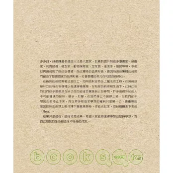 台灣人的創意一直在整片以「拚經濟」掛帥的思想氛圍下耗盡了所有國民與生俱來的多元創造力和國際競爭力,人性最珍貴的「夢想」,隨著社會價值的壓力下逐漸fade out,最後島內的人都在比誰的工作幫他賺了多少錢,好像賺最多錢的人才是大贏家。我看到國外有很多漫畫家、紙雕家、刺青師傅、模型家、動物保育家、足球員、衝浪手、廚師等等,不但以興趣成就了自己的價值、自己獨特的品牌形象,更因為這些集體的成就而創造了整個國家的品牌形象、社會整體的多元性和民族自信心。