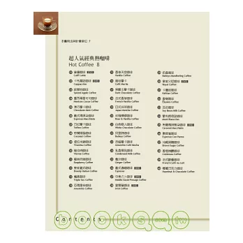 ★超人氣經典熱咖啡:卡布奇諾、拿鐵、摩卡、維也納、皇家咖啡…等40種。