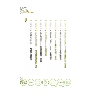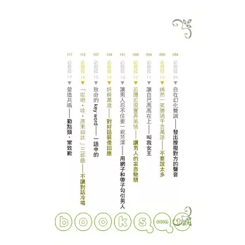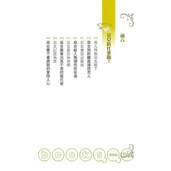 本書就是要教妳引用「技巧」,或許有讀者會認為過於刻意,也或許有讀者會認為這麼三兩下就能操縱男人,未免太不可思議。不過這是多慮了,因為男人本來就是笨蛋。當然,作者並不是要教女人如何海削男人,或是把男人當做跳板,踩著他們往上爬,這樣也太離譜了。作者只是希望大家練就女性魅力升級技巧,從此過著豐足、快樂的人生。